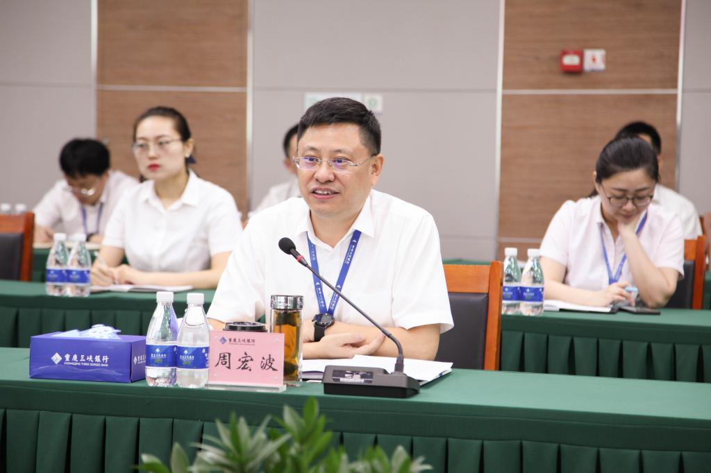 会上,周宏波对王敬春、罗士平副会长的到来表示欢迎,介绍了三峡银行发展历程以及金融服务优势。王敬春对三峡银行的邀请表示感谢,并就外贸行业发展动态、银企合作模式等方面进行了分享。双方围绕企业与银行“联手、联利、联心、联谊”互利双赢的发展模式展开交流。