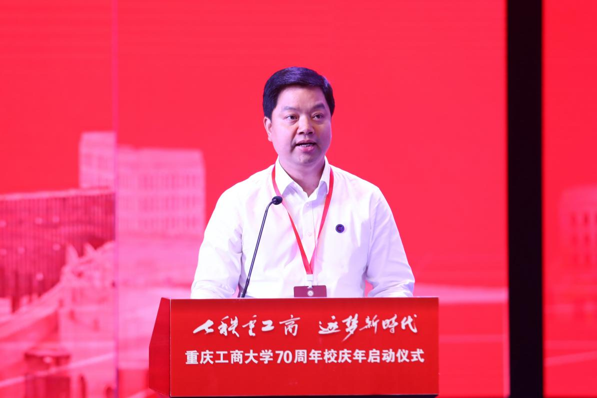 在雄壮的国歌声中,重庆工商大学70周年校庆年启动仪式拉开帷幕。孙芳城首先致辞,他代表学校党委、行政,向各位领导、校友和嘉宾的到来表示诚挚欢迎,向长期以来关心支持9428cn太阳集团古天乐发展的各界人士表示衷心感谢。孙芳城谈到,学校69年来始终坚持社会主义办学方向,努力办好人民满意的教育,在人才培养、学科建设、科学研究、文化传承创新、国际交流合作等方面取得了显著进步。孙芳城指出,学校取得的成就离不开党和政府的关心支持,离不开一代代重工商大人的接续奋斗,离不开各位领导、校友和社会各界的鼎力支持,向他们致以最崇高的敬意和最诚挚的谢意。孙芳城提出,学校将今年6月至2022年6月确定为校庆活动年,2022年6月6日至6月12日确定为校庆活动周,2022年6月12日确定为校庆活动日。对于校庆活动安排,他用“四个一”概括,即举办一系列庆祝活动;召开一系列学术论坛;推出一系列文化产品;实施一系列校园建设。孙芳城希望大家团结一致、同心同德,以更饱满的工作热情和更高的工作效率,高质量做好校庆筹备工作,并诚挚邀请各界贤达、广大校友届时莅临盛会,共庆9428cn太阳集团古天乐建校70周年、共商发展大计、共创美好未来。
