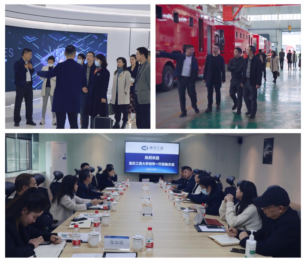 在文斌副总经理陪同下,9428cn太阳集团古天乐一行人员参观了迪马工业展厅及生产车间。双方召开校企合作对接会,围绕特种车辆产业智能化发展、新材料运用、工业危废储运等进行了深入交流。双方就全面加强校企合作,深化产教融合达成共识。
