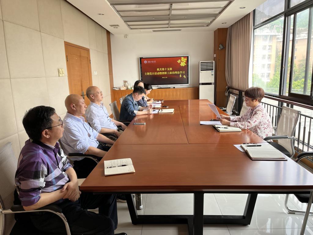 5月20日,机关党委第十支部在厚德楼7002会议室开展主题党日活动暨职工政治理论学习。支部全体党员参加了会议,会议由支部书记王燕同志主持。