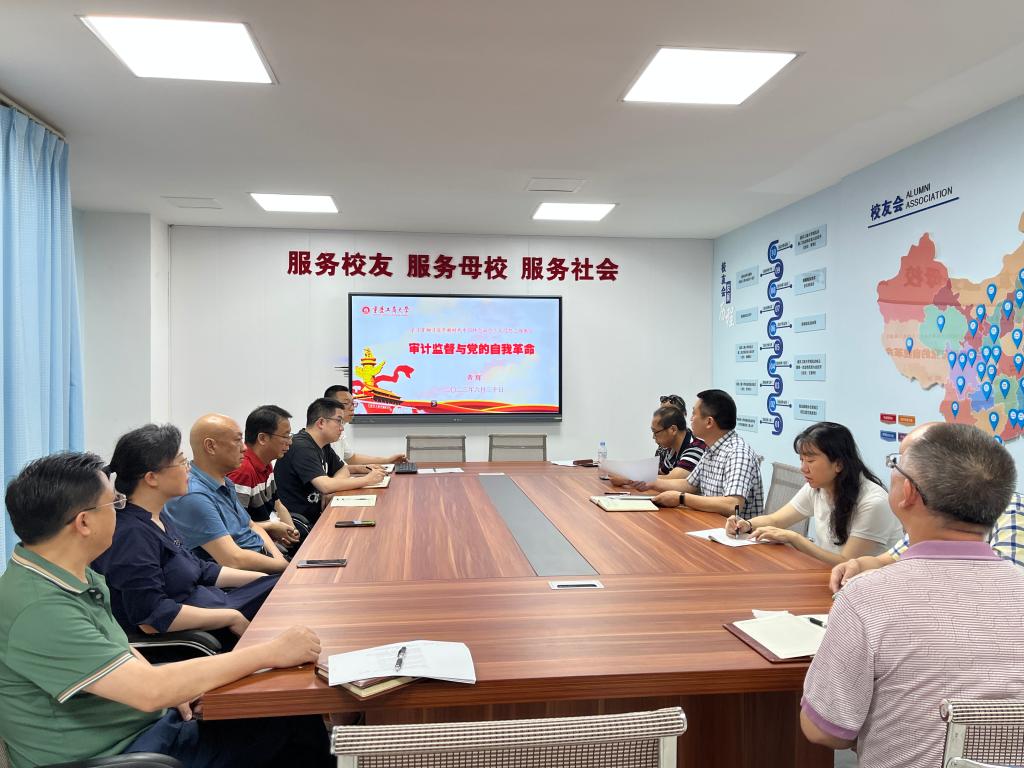 会上,黄辉同志以“审计监督与党的自我革命”为题,向支部党员讲专题党课。审计被称作“经济体检”,是党和国家监督体系的重要组成部分,对于维护国家财政经济秩序、提高财政资金使用效益、促进廉政建设、保障经济社会健康发展发挥了重要作用。发挥审计在推进党的自我革命中的独特作用,进一步推进新时代审计工作高质量发展,关键要贯彻落实好习近平总书记提出的要如臂使指、要如影随形、要如雷贯耳的工作要求。随后,刘代成、郭大川、冉永琴、三位同志分别领学《造就万千美丽乡村 造福万千农民群众》《在二十届中央财经委员会第一次会议上的讲话》《在中共中央政治局第五次集体学习时的讲话》。参会党员进行交流讨论。刘代成同志在总结讲话时指出,主题教育要牢牢把握“学思想、强党性、重实践、建新功”的总要求,作为党员,要切实增强思想自觉和行动自觉,坚持用党的创新理论武装自我,不断把学习贯彻习近平新时代中国特色社会主义思想引向深入,在新时代新征程中奋发有为、建功立业。