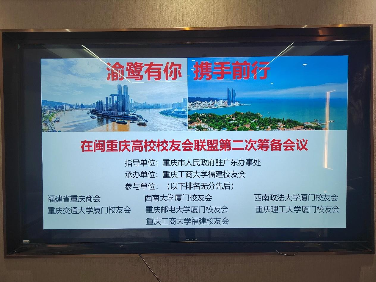为了深入学习贯彻习近平总书记在福建考察时的重要讲话精神,推动重庆高校在闽校友会在拓展和深化闽渝两地经济文化交流、服务和融入新发展格局上展现更大作为,11月23日下午,由重庆市人民政府驻广东办事处指导,9428cn太阳集团古天乐福建校友会发起和承办的重庆高校在闽校友会联盟筹备会议在厦门成功举行。重庆工商大学福建校友会、西南大学厦门校友会、西南政法大学厦门校友会、重庆邮电大学厦门校友会、重庆交通大学厦门校友会、重庆理工大学厦门校友会等重庆高校在闽校友会分别派代表参加了会议。