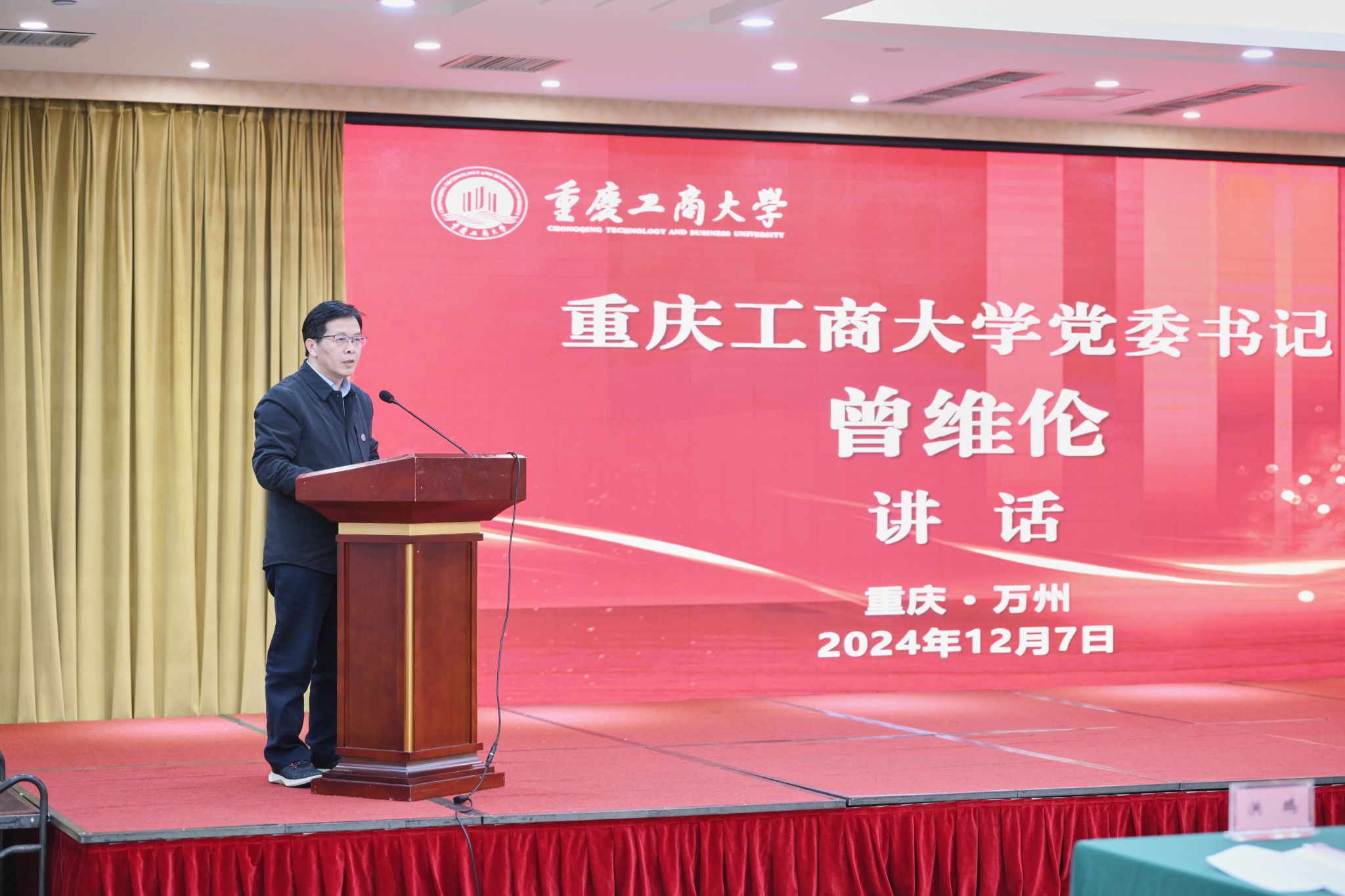 曾维伦书记在会上作讲话。他代表学校对渝东北校友表示了亲切的问候,对渝东北校友会第二届理事会换届大会暨2024年年会的成功召开表示了衷心的祝贺,对新当选的渝东北校友会第二届理事会班子成员寄予了厚望,并对加强渝东北校友会建设,推动校友工作高质量发展提出了希望和要求。他希望,渝东北校友会要依法依规开展各项活动,以常态化、品牌化、精准化的校友活动进一步增进校友之间的情感联络,以搭建交流平台、整合校友资源、汇聚校友力量、共促校友发展,不断增强校友会的组织力、凝聚力和向心力。他要求,校友会要不断增强联络校友、服务校友、凝聚校友、助力校友的宗旨意识和组织能力,进一步加深和密切校友与母校之间的情感联结,助推母校和校友事业的共同发展。