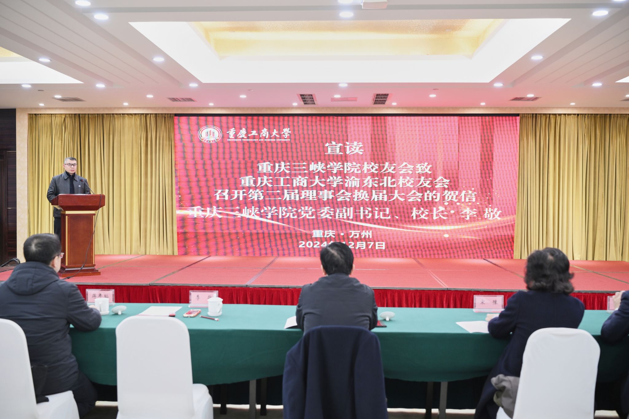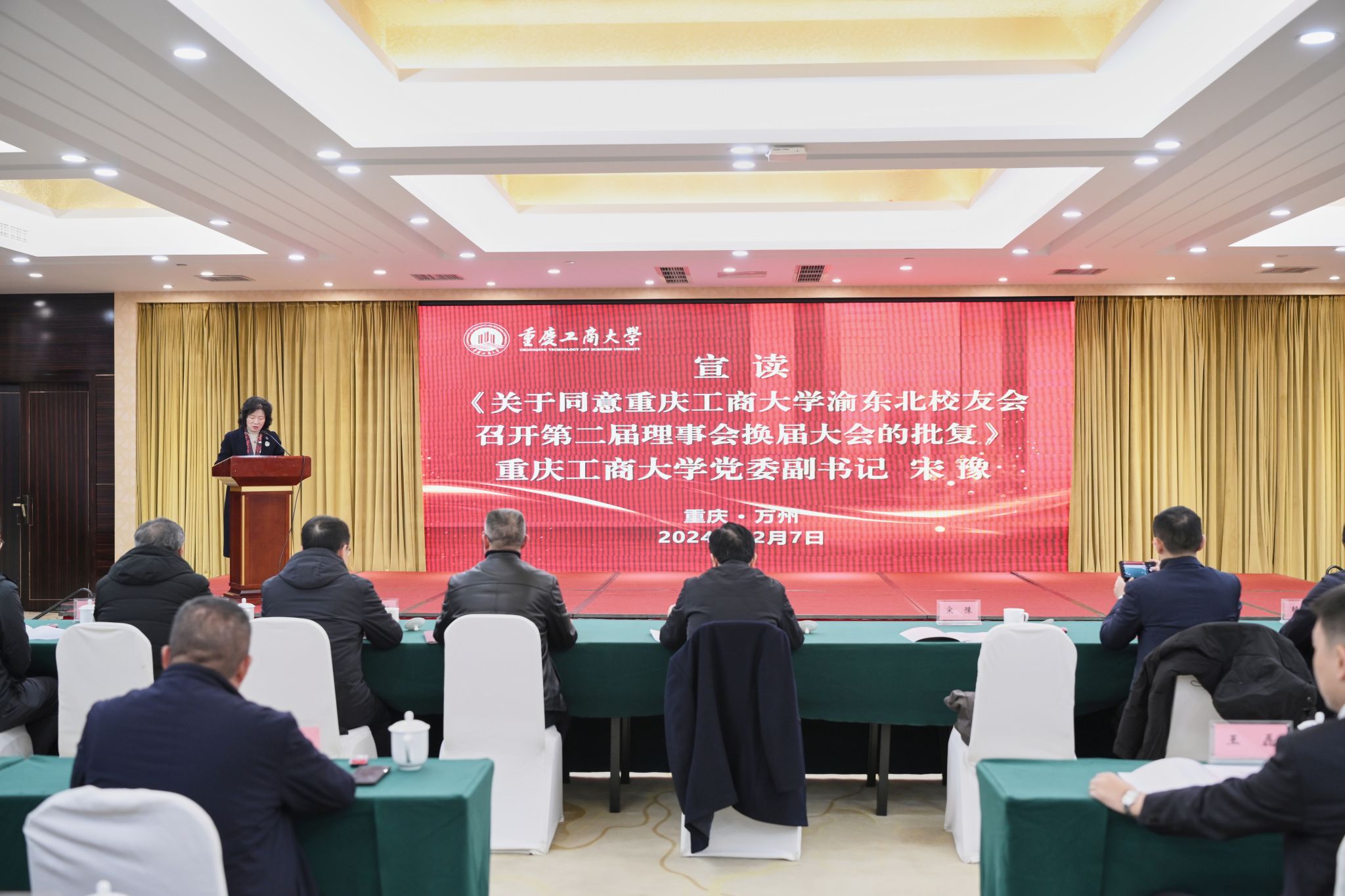 会上,宋豫宣读了《关于同意重庆工商大学渝东北校友会召开第二届理事会换届大会的批复》文件。