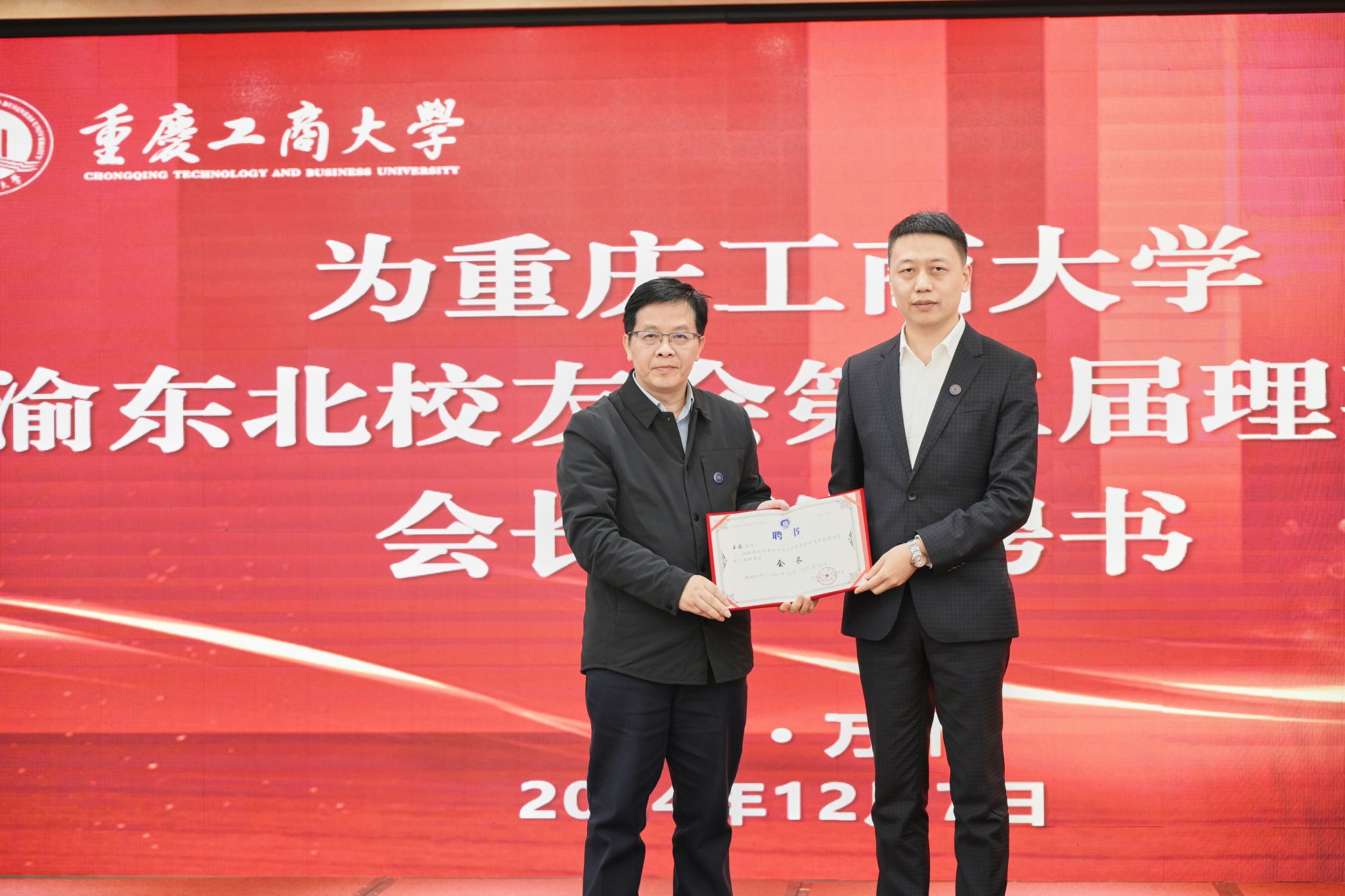会议审议通过了《重庆工商大学渝东北校友会管理办法》,选举产生了重庆工商大学渝东北校友会第二届理事会。与会领导为新当选的渝东北校友会第二届理事会成员颁发了聘书。