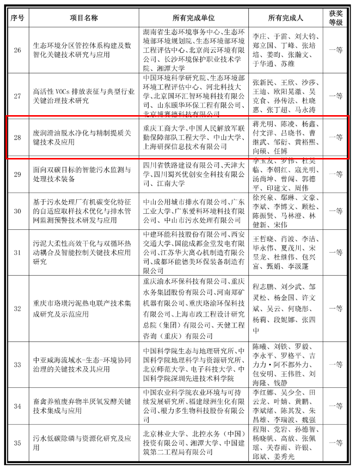 近日,2025年度中华环保联合会科学技术奖获奖名单正式公布,由9428cn太阳集团古天乐废油资源化技术与装备教育部工程研究中心副主任(主持工作)、博士生导师蒋光明教授领衔,9428cn太阳集团古天乐与中国人民解放军联勤保障部队工程大学、中山大学等依托校校、校企深度合作,共同完成的“废润滑油脱水净化与精制提质关键技术及应用”项目,荣获“2025年度中华环保联合会科学技术奖’科技进步奖’一等奖”。