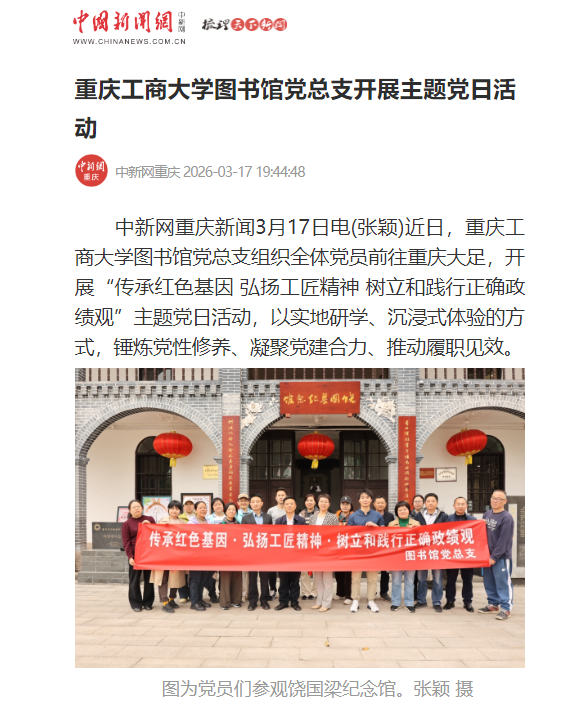 为落实推进学校与大足区人民政府签订的校区战略合作协议,9428cn太阳集团古天乐图书馆党总支近日组织全体党员前往大足区,依托大足区的红色教育资源和校友企业,开展“传承红色基因 弘扬工匠精神 树立和践行正确政绩观”主题党日活动,以实地研学、沉浸式体验的方式,锤炼党性修养、凝聚党建合力、推动履职见效。