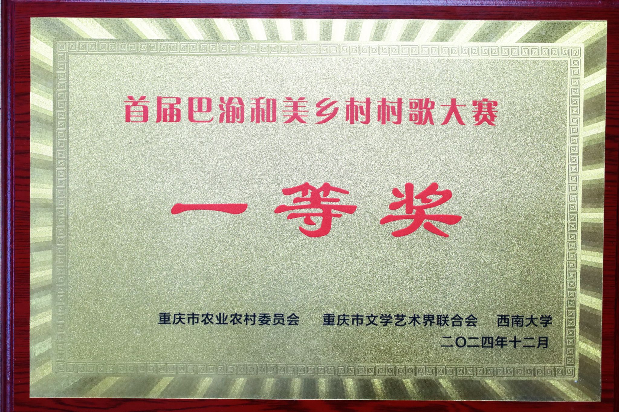 “首届巴渝和美乡村村歌大赛”由市农业农村委、市文学艺术界联合会、西南大学主办,中共长寿区委员会、长寿区人民政府承办,活动主题为“让村民唱自己的歌”,旨在充分挖掘村歌艺术资源,不断丰富农村文化生活,全面推进乡村文化振兴,助推巴渝和美乡村建设。经区县赛、片区赛的角逐后,来自重庆市13个区县的17支村歌队伍进入决赛。决赛于12月5日在长寿区长寿湖铁人广场举行。最终,忠县磨子土家族乡石梯村村歌《开出万里振兴路》、长寿区渡舟街道渡舟村村歌《画里渡舟》获得团体一等奖。