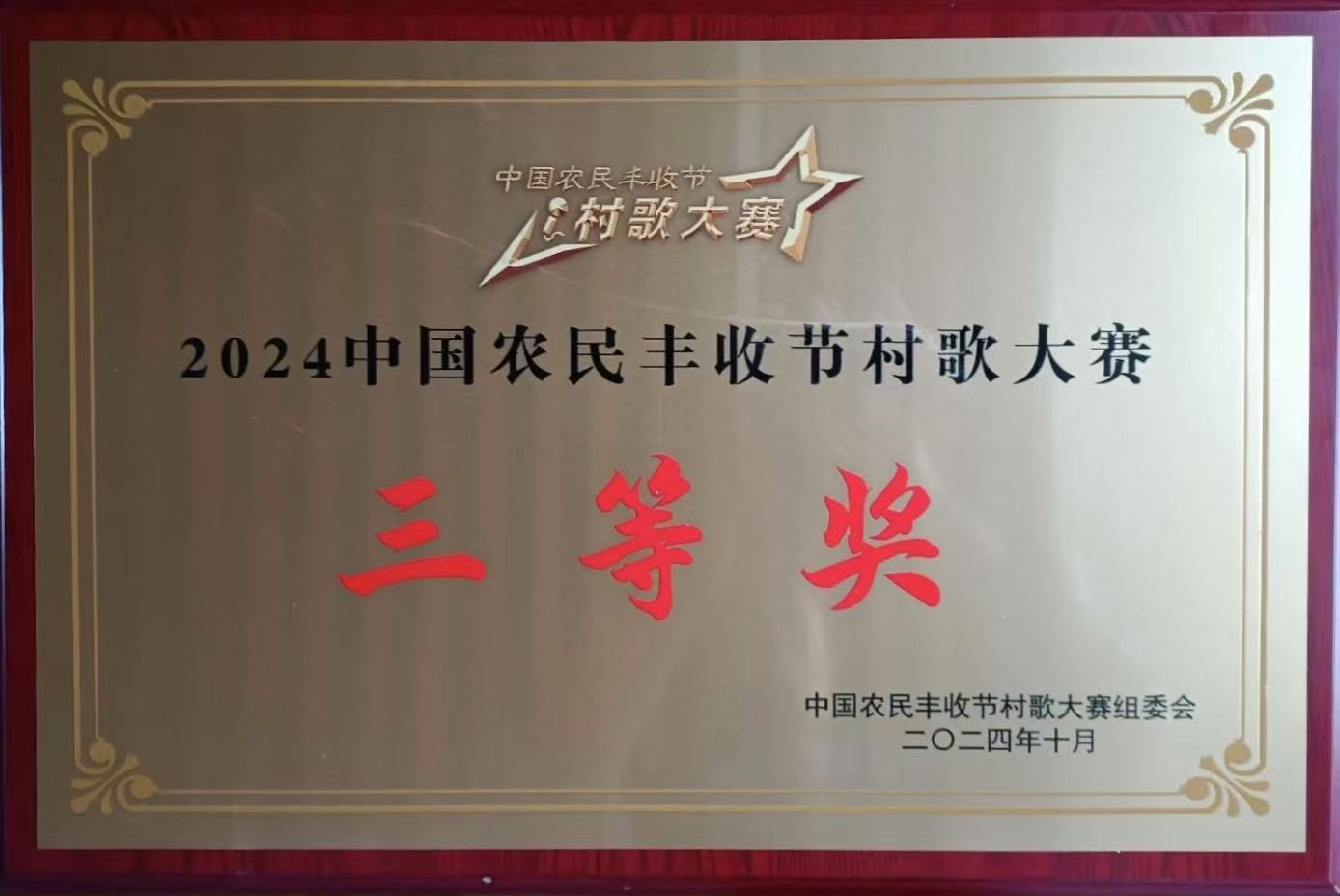 据悉,“2024中国农民丰收节村歌大赛”是中国农民丰收节组织指导委员会指导,中国农村杂志社联合山东省农业农村厅主办,中共莱阳市委、莱阳市人民政府承办的活动,启动仪式于2024年9月1日在北京市通州区台湖镇举行。大赛秉承庆祝丰收、弘扬文化、振兴乡村宗旨,以“学用‘千万工程’、礼赞丰收中国”为主题,采取赛区制,在全国设有东、西、南、北、中五大赛区,全程分为“大区赛、总决赛”两个阶段。经过逐级推荐、材料审查、专家评审、线上评选、组委会复核等环节,全国15支村歌队伍晋级全国总决赛。《开出万里振兴路》经西部赛区激烈角逐晋级全国决赛。总决赛颁奖仪式暨莱阳梨文化季文艺展演在山东莱阳市成功举办。来自全国13个省(自治区、直辖市)的13支村歌队伍,分获大赛一、二、三等奖。