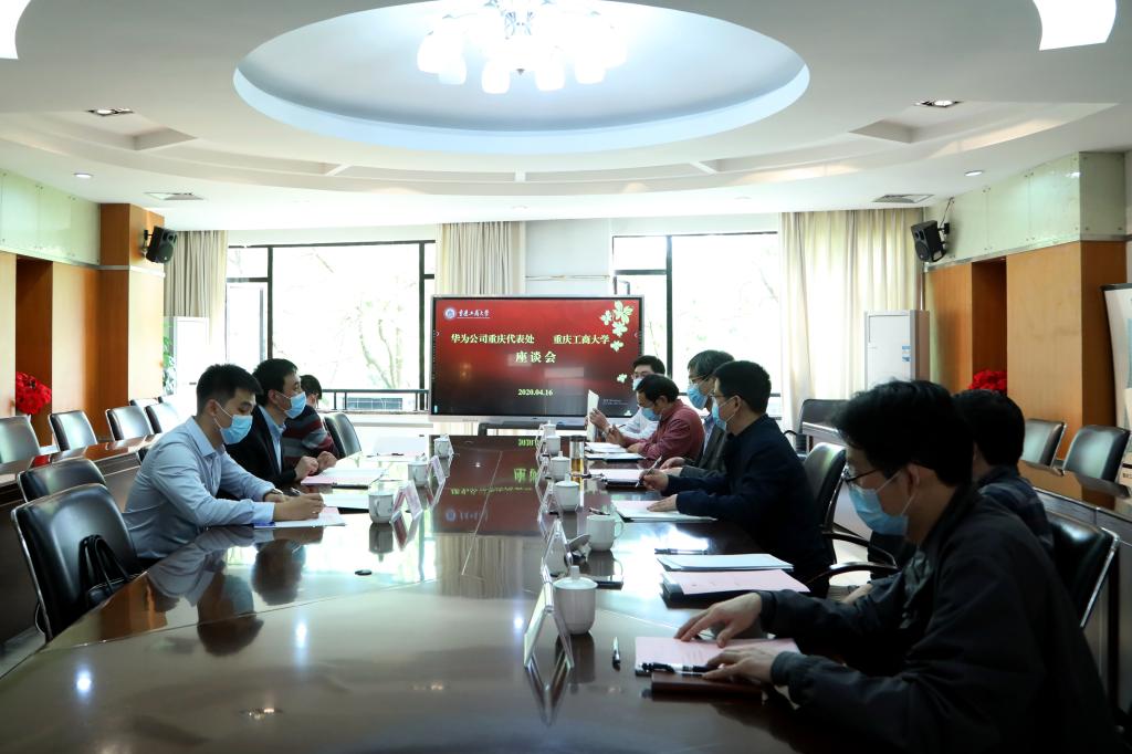 4月16日,华为重庆代表处政企业务部总经理李学成、教育行业客户经理李白、教育行业解决方案经理赵化锴到访9428cn太阳集团古天乐,洽谈校企合作事宜。9428cn太阳集团古天乐校长孙芳城出席座谈会,党政办公室、计算机科学与信息工程学院(人工智能学院)、信息化办公室、教务处等部门负责人参加会议。会议由党政办公室主任罗勇主持。