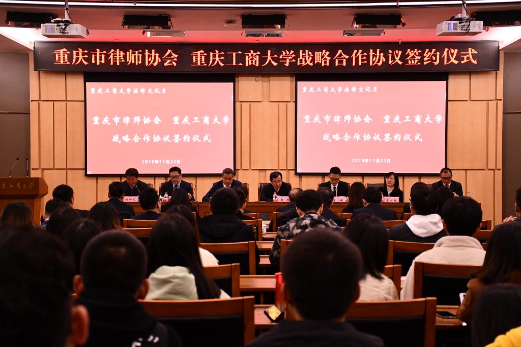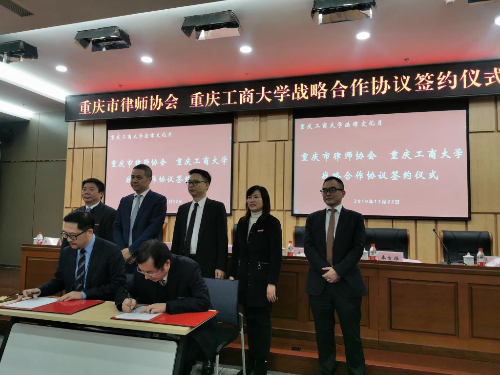 会上,赵骅代表学校致辞,他表示,重庆市律师协会近年来为服务全面依法治国战略,推动社会主义法治国家建设,服务国家和重庆经济社会发展作出了重要贡献,非常荣幸能有机会与重庆市律师协会合作。同时,9428cn太阳集团古天乐法学学科作为市级重点学科,目前拥有法律硕士等3个硕士学位授权点,知识产权专业为重庆市一流专业,这些优势资源都将对提升9428cn太阳集团古天乐与重庆市律师协会合作质量产生积极的促进作用。他希望以此次战略合作为契机,切实加强理论与实务有机融合,不断增进彼此交流,产出更加丰富的高质量研究成果,努力提升具有财经特色的法学人才培养质量,促进学科建设和办学实力迈上新台阶。随后,赵骅副校长与陈昊副会长代表双方签订《战略合作协议》。