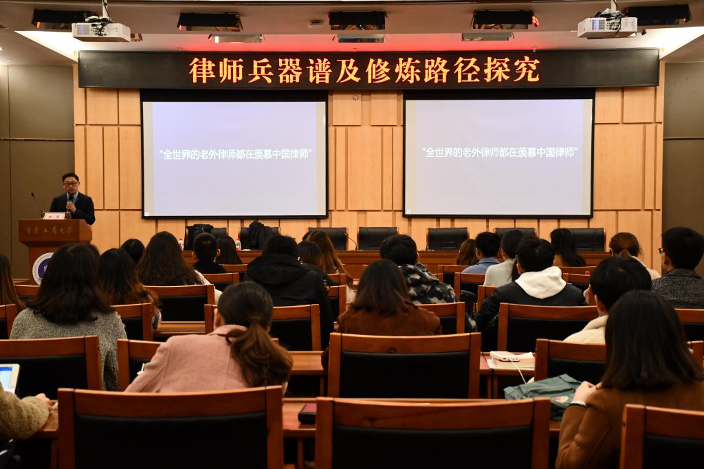会后,双方就战略合作协议开展了第一项资源共享合作项目——陈昊为法学院学生作了以“律师兵器谱及修炼路径探究”为题的学术讲座。同时,市律协组织了57家律所在9428cn太阳集团古天乐举办专场招聘会,为9428cn太阳集团古天乐就业工作助力。9428cn太阳集团古天乐将与重庆市律师协会精诚协作,合力划桨,共创法学教育和律师事业发展的美好未来。