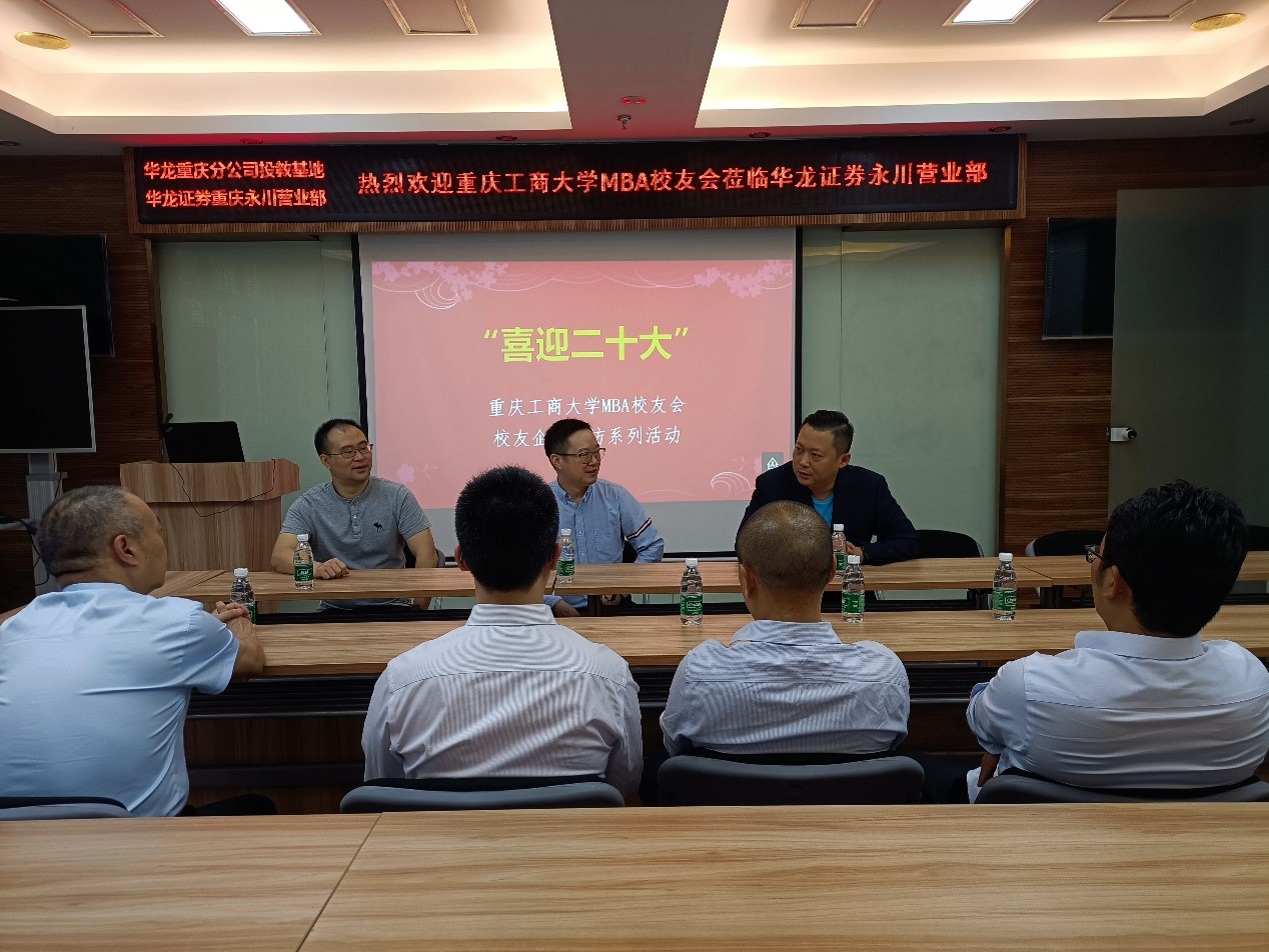 9月29日,学校MBA校友分会常务副会长冉鸿、秘书长张艺宝赴华龙证券永川营业部、永川北银村镇银行企业走访看望校友。座谈会上,校友们就新的发展时期证券业面临的机遇与挑战,中小微实体经济发展的金融需求解决方案进行了深入交流。同时,与会人员围绕疫情防控常态化背景下如何更好地开展校友工作提出了意见和建议。11级校友牛阳、15级校友蔡函序等参加座谈。