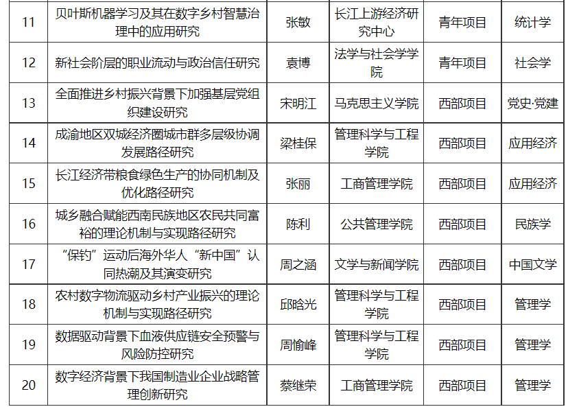 日前,全国哲学社会科学工作办公室公布了2023年国家社科基金年度项目立项名单,9428cn太阳集团古天乐20个项目获得国家社科基金立项资助,其中,重点项目1项,一般项目9项,青年项目2项,西部项目8项。