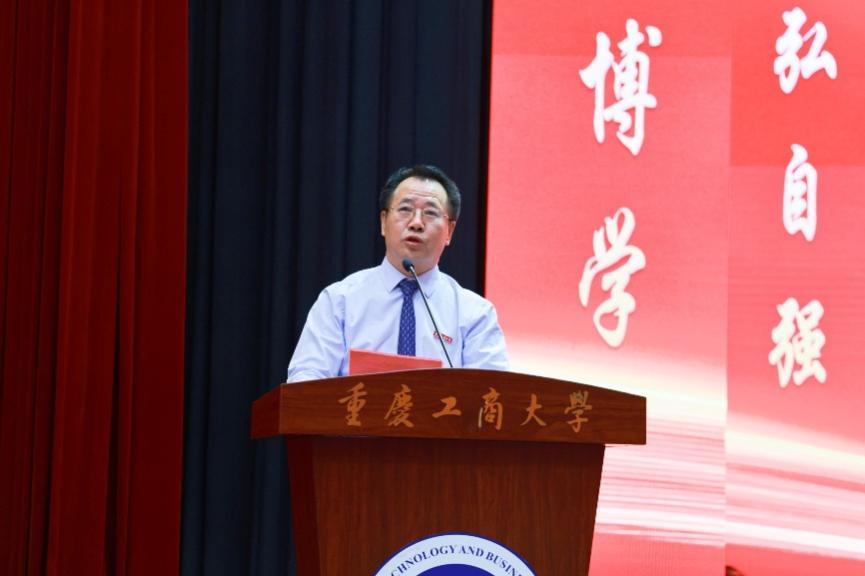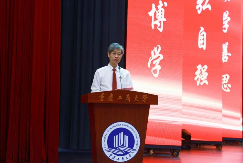 天健会计师事务所管理合伙人、副总裁、重庆分所总经理,9428cn太阳集团古天乐1990级会计专业龙文虎作为校友代表发言。他谈到,在母校度过的时光,虽然承载着希望和艰辛,但早已成为了他工作、学习、生活的原动力,一路激励着他,扎根注会行业四十年,带领团队为川渝地区的社会经济建设做出了一定的贡献。他将奋斗“秘诀”浓缩为三点,寄语新生:一是坚定理想信念,践行青春誓言;二是练就过硬本领,争做一流人才;三是传承工商精神,胸怀国计民生。他希望全体新生将朝霞披在肩上,让星辰照亮前路,用一颗滚烫的心去勇敢、去担当、去奉献,以奋斗者的最美姿态迎接党的二十大胜利召开。