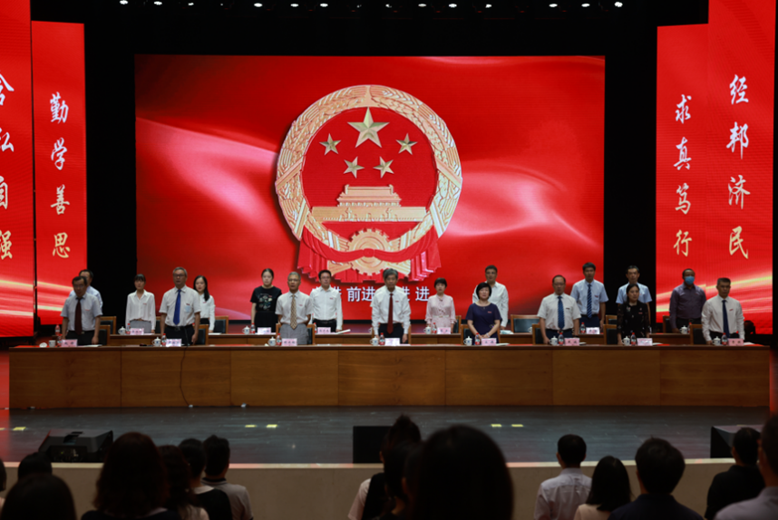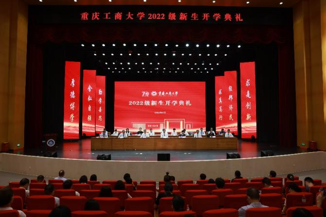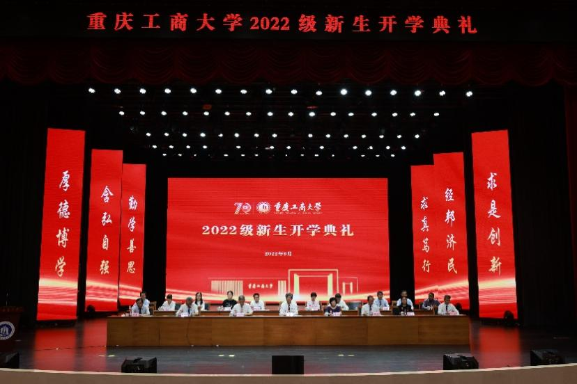 9月8日上午9:00,9428cn太阳集团古天乐2022级新生开学典礼在南岸校区隆重举行。本次典礼采用“线上直播+线下典礼”的方式进行,与7000余名来自五湖四海的2022级本、硕、博新生“云”端相聚。线下会场设在学校剧场。学校党委副书记、校长孙芳城,党委副书记宋豫,党委常委、副校长陈运超、张波、李国军、柏群、赵骅、李敬,以及学校教师和专家代表、校友代表出席了开学典礼。通过线上、线下参加开学典礼的还有:各职能部门负责人,各学院(中心)负责人,2022级新生辅导员以及全体2022级新生。典礼由李国军主持。