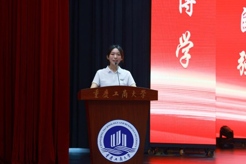2022级国际商学院会计专业的王盈艳同学作为新生代表发言。她谈到,回望十二年的寒窗苦读、挑灯夜战,同学们在属于自己的战场上乘风破浪,披荆斩棘。正是每一次的坚持不懈,每一次的顽强拼搏,才有今日来到重庆工商大学的坦然,这无疑是多年勤奋学习的最好答复。她表示,在大学除了学习,还有社会实践、学科竞赛、志愿服务和更多的自我展示舞台,希望大家在新的起跑线上跑出不一样的风采。