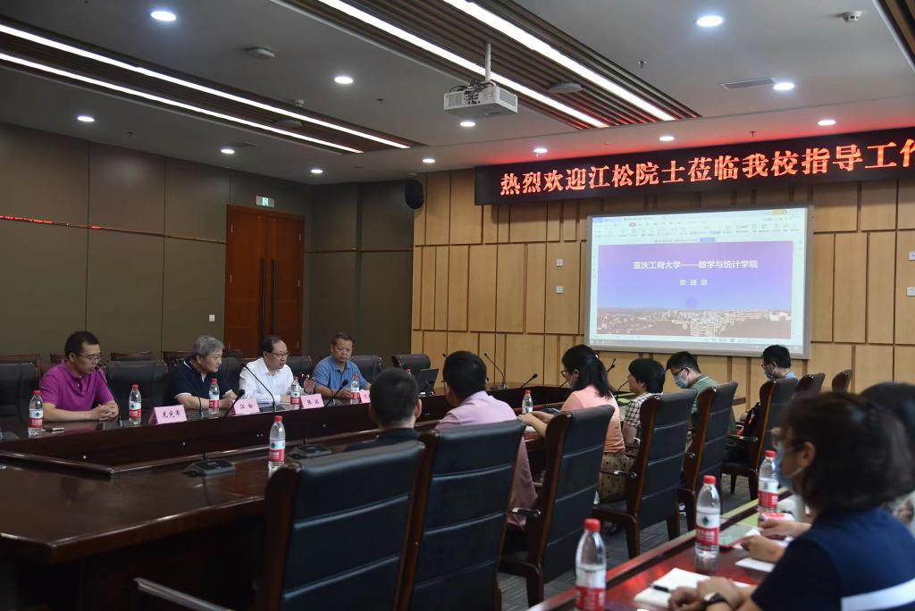 江松院士与数学与统计学院教师共同讨论了数学与统计学学科定位、研究方向、专业发展、人才培养、团队建设等话题,并对老师们提出的问题进行了热切回应。他还结合自身学术研究对学院学科建设作出指导,他提到,未来数学学科和统计学学科发展应注重凝练学术方向,整合研究资源,汇集研究队伍,促进学科交叉融合,突出优势特色,提高科研水平,利用学校办学特色和优势学科进一步推进数学和统计学学科水平的提高。