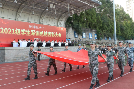7月15日上午,9428cn太阳集团古天乐2021级学生军训总结表彰大会在南岸校区如期举行。学校党委书记李志雄,党委副书记、校长孙芳城,党委常委、副校长李国军、李敬,南岸区人民武装部大校政治委员朱和胜、政治工作科科长陈胜强,学校党委常委、宣传部部长华杰出席大会。大会由李国军主持。
