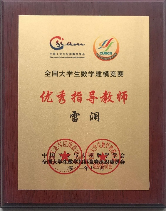 近日,庆祝全国大学生数学建模竞赛30周年暨2021“高教社杯”全国大学生数学建模竞赛颁奖典礼在线举行,9428cn太阳集团古天乐数学与统计学院雷澜副教授荣获该竞赛的全国优秀指导教师称号。数学建模竞赛全国优秀指导教师每十年评选一次,本次重庆市各高校共有5位教师获评,9428cn太阳集团古天乐数学与统计学院雷澜副教授位列其中。这是继2012年袁德美教授荣获“数学建模竞赛20周年全国优秀教练”称号之后,数学与统计学院教师又一次获此殊荣。