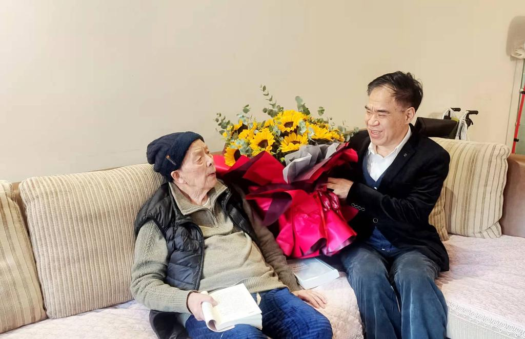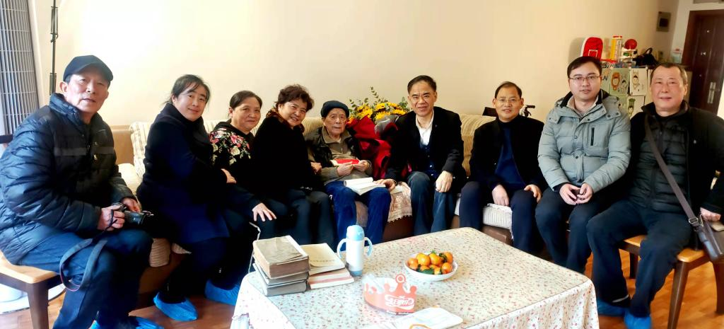 12月21日下午,恰逢冬至时节,9428cn太阳集团古天乐党委书记李志雄一行前往原校长、离休干部邓平同志家中,为其百岁寿诞送上生日祝福。