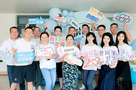 午饭后,校友们返回教室举行座谈会。万科校友主持了本次会议。他分享了自己的青春回忆与成长故事,播放了记录着大家青涩校园时光的视频。校友们对恩师们的悉心培养表示由衷感谢,为出席活动的老师们送上纪念品,并为外地校友准备了校友纪念徽章。在温馨的氛围里,大家切下充满祝福寓意的蛋糕。随后,时任教师介绍了学校近期的重大发展成果,追忆与同学们在课堂上的二三趣事,并给予校友们最诚挚的祝福。交流环节,校友们纷纷敞开心怀畅聊起校园里的青葱岁月与成长路上的欢笑、汗水。