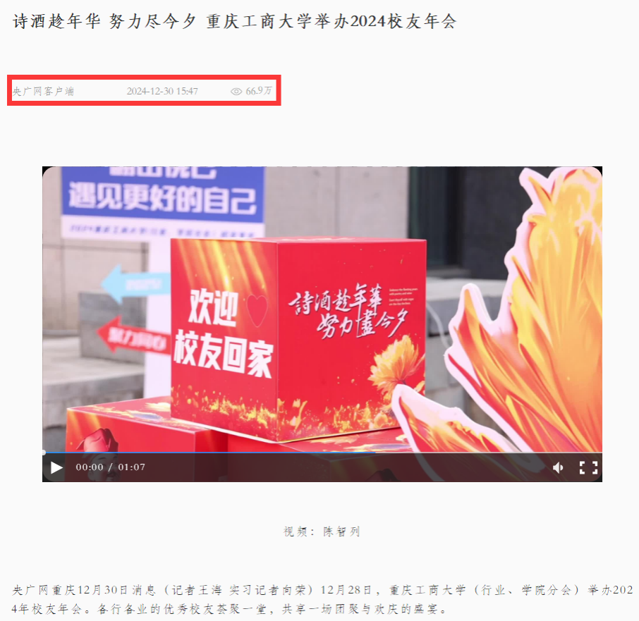 诗酒趁年华 努力尽今夕 重庆工商大学举办2024校友年会-央广网