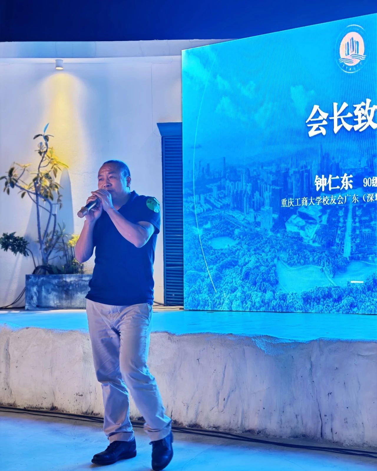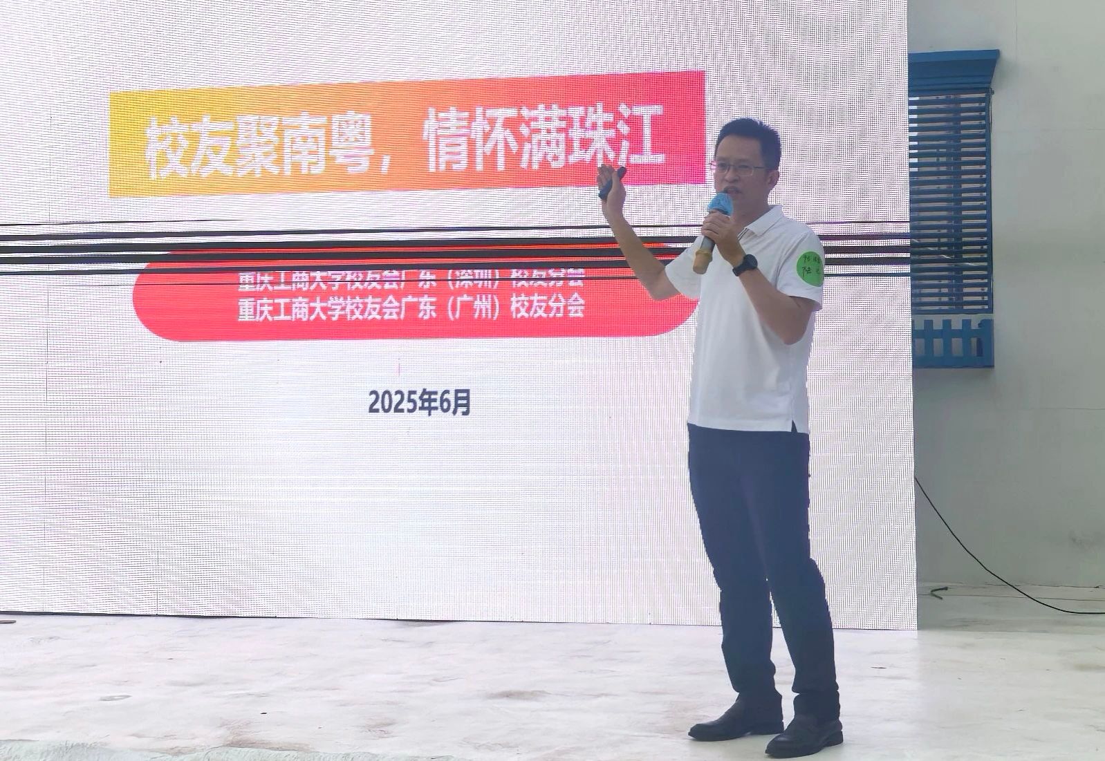 16:30活动正式开启,广东(深圳)校友会执行会长陆化登台致辞。他详细介绍了广东(深圳)校友会发展历程,历次精心组织的文体旅游活动、校友沙龙、经验分享等。他表示,校友会是校友们的“港湾”,未来将持续深化服务,搭建更高效的互动交流平台,做大家在粤港澳大湾区打拼的坚实后盾。他以“老深圳人”和“大师兄”的双重身份,向初来鹏城的新校友们表达了诚挚欢迎。