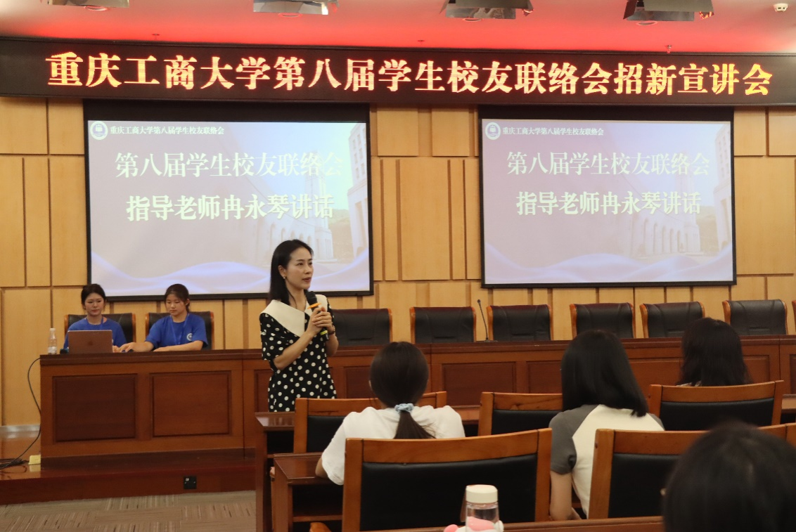 最后,指导老师冉永琴在讲话中肯定了学生校友联络会作为“锻炼综合能力、拓展行业视野”的平台价值。她强调,校友工作要秉持“服务校友、服务母校、服务社会”的宗旨,用真诚搭建情感桥梁,用实干积累成长经验,这些看不见的“软实力”,是成长中更有价值的收获。